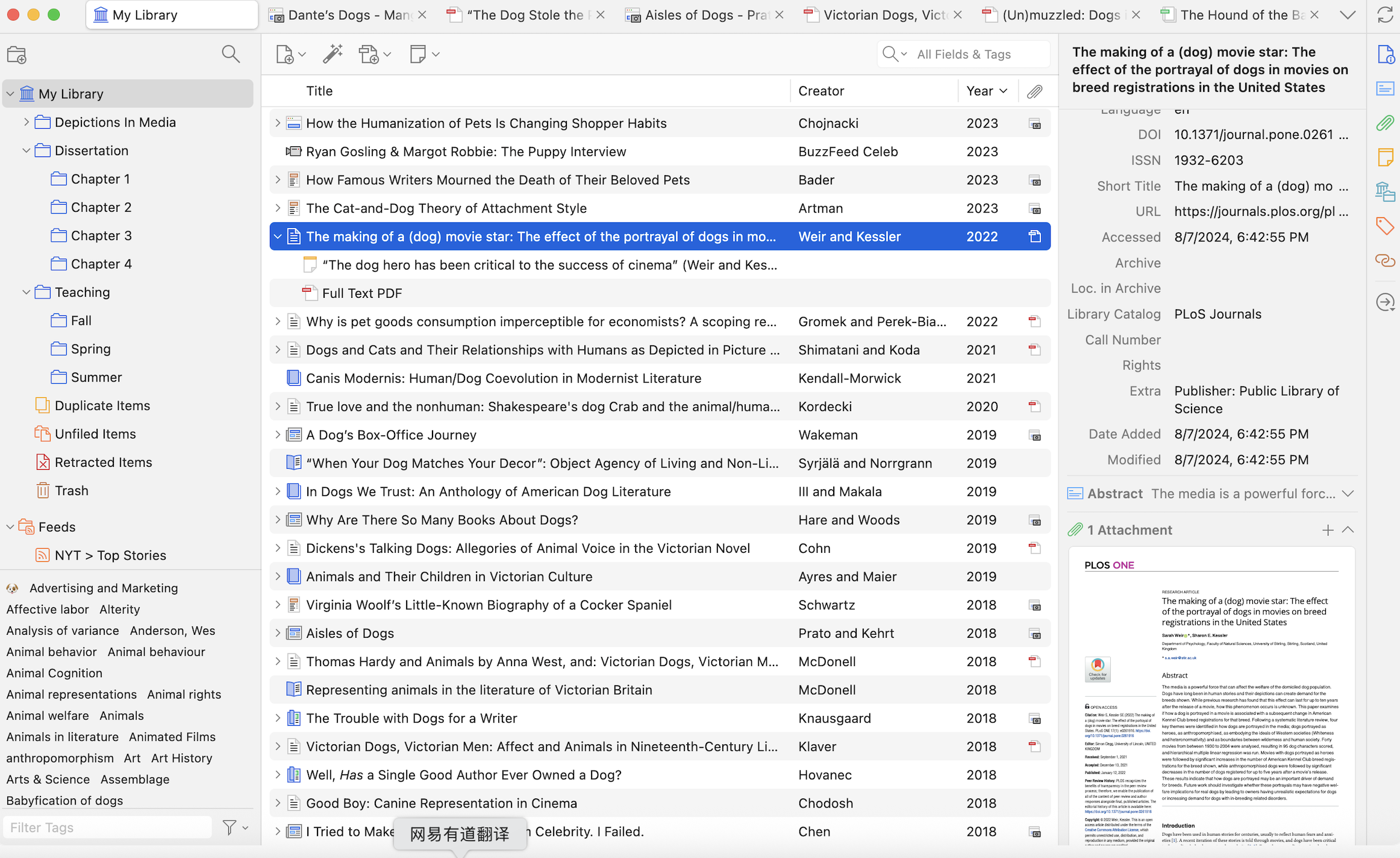 Zotero采用经典的三栏布局, 分别对应文献库的层级结构、文献条目列表以及条目的详细信息与编辑区域。这三个区域共同构成Zotero进行文献管理、 编辑与检索的核心操作界面。