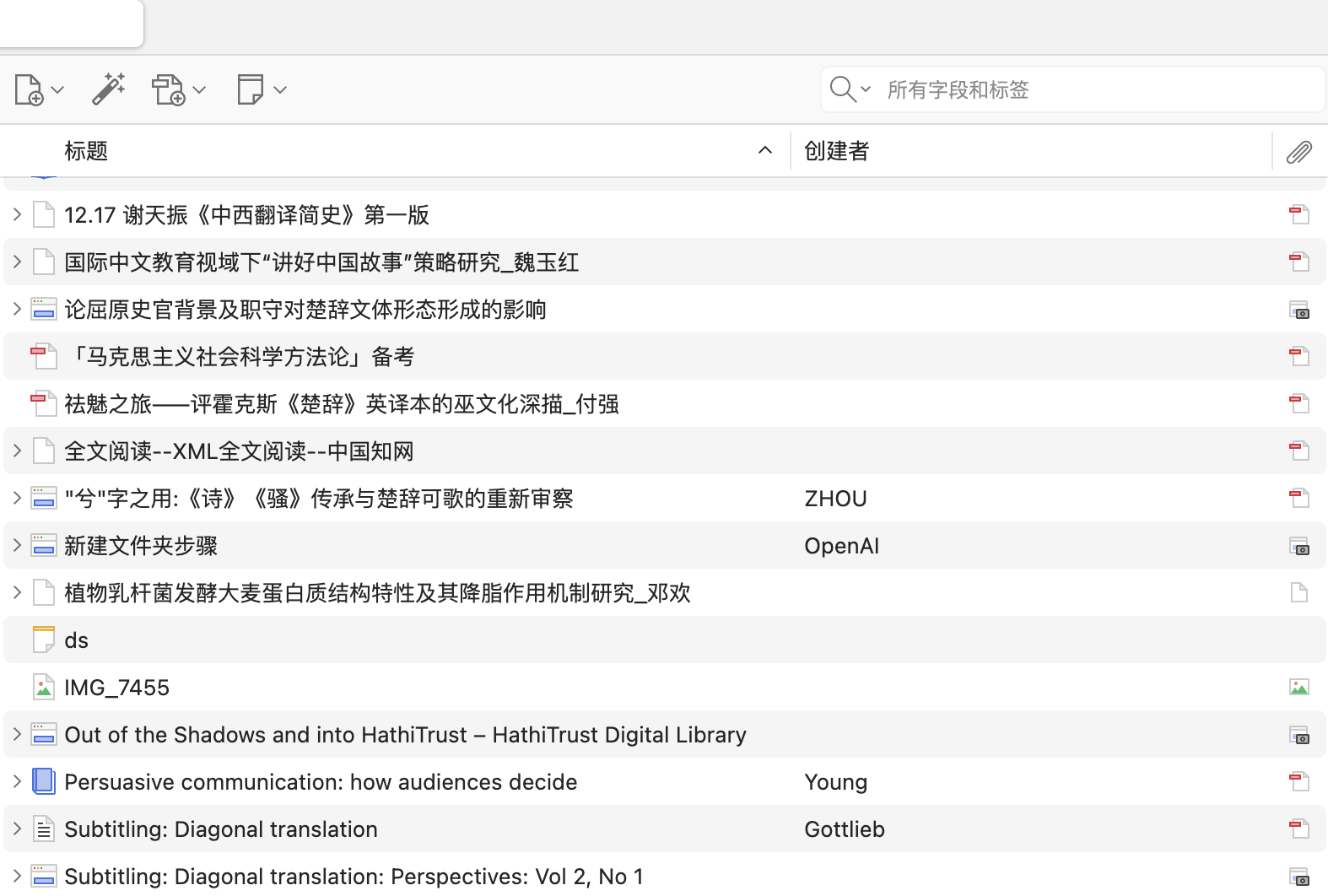 本节介绍 Zotero 中栏的文献条目列表, 以及排序、筛选和搜索相关功能。