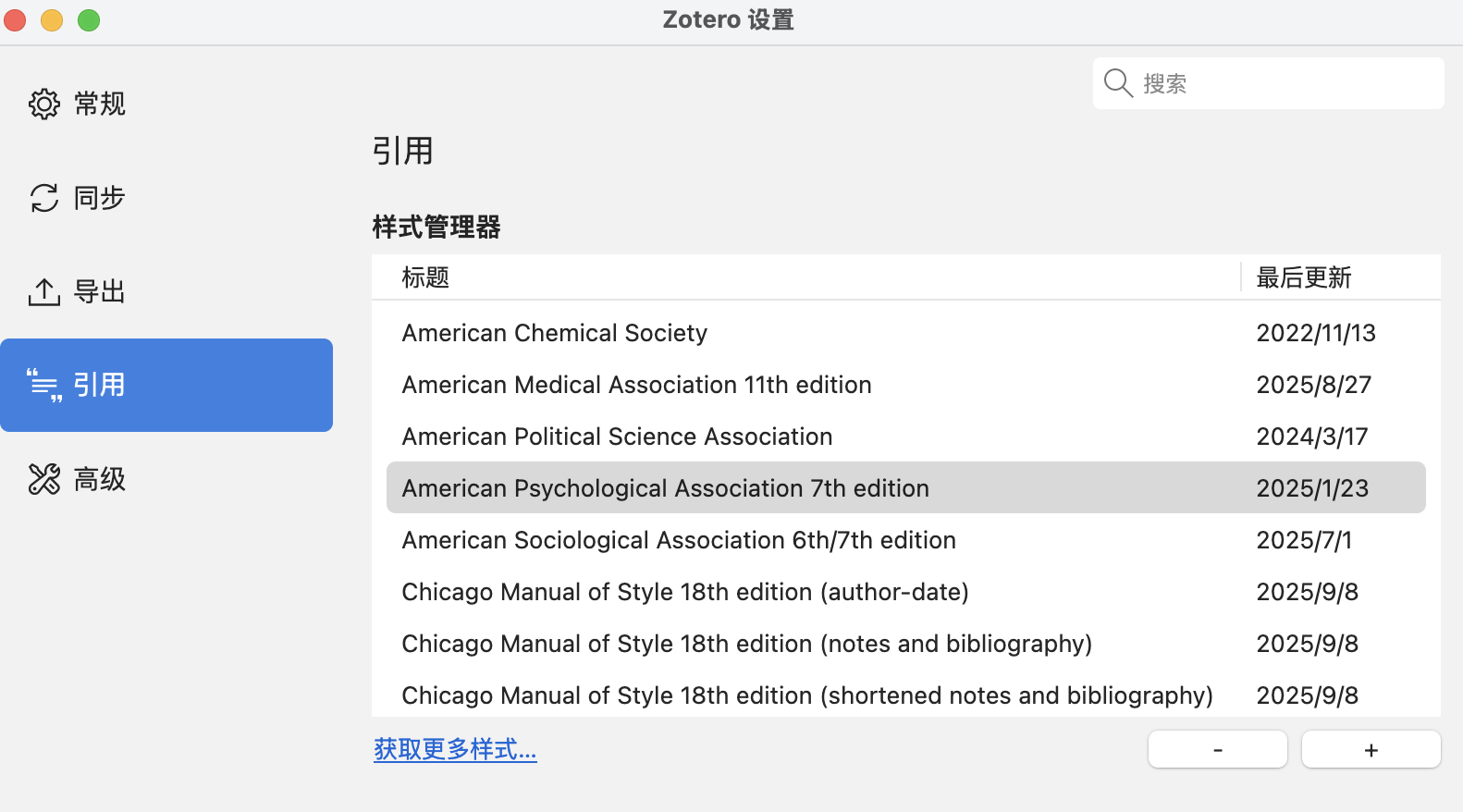 Zotero内置样式仓库, 覆盖几乎所有主流学科和期刊格式。
