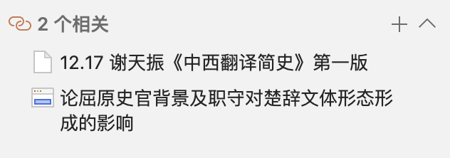 “相关”区域用于集中展示与当前条目建立关联的其他文献条目。
