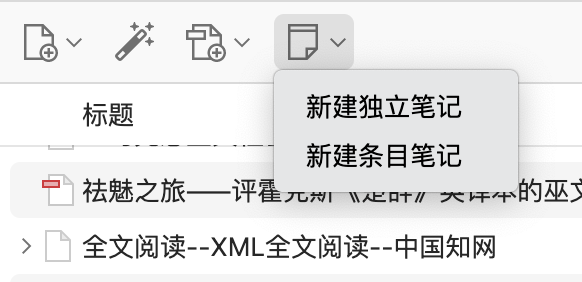- 在文献库页面,点击上方“新建笔记”图标,选择“新建独立笔记”。